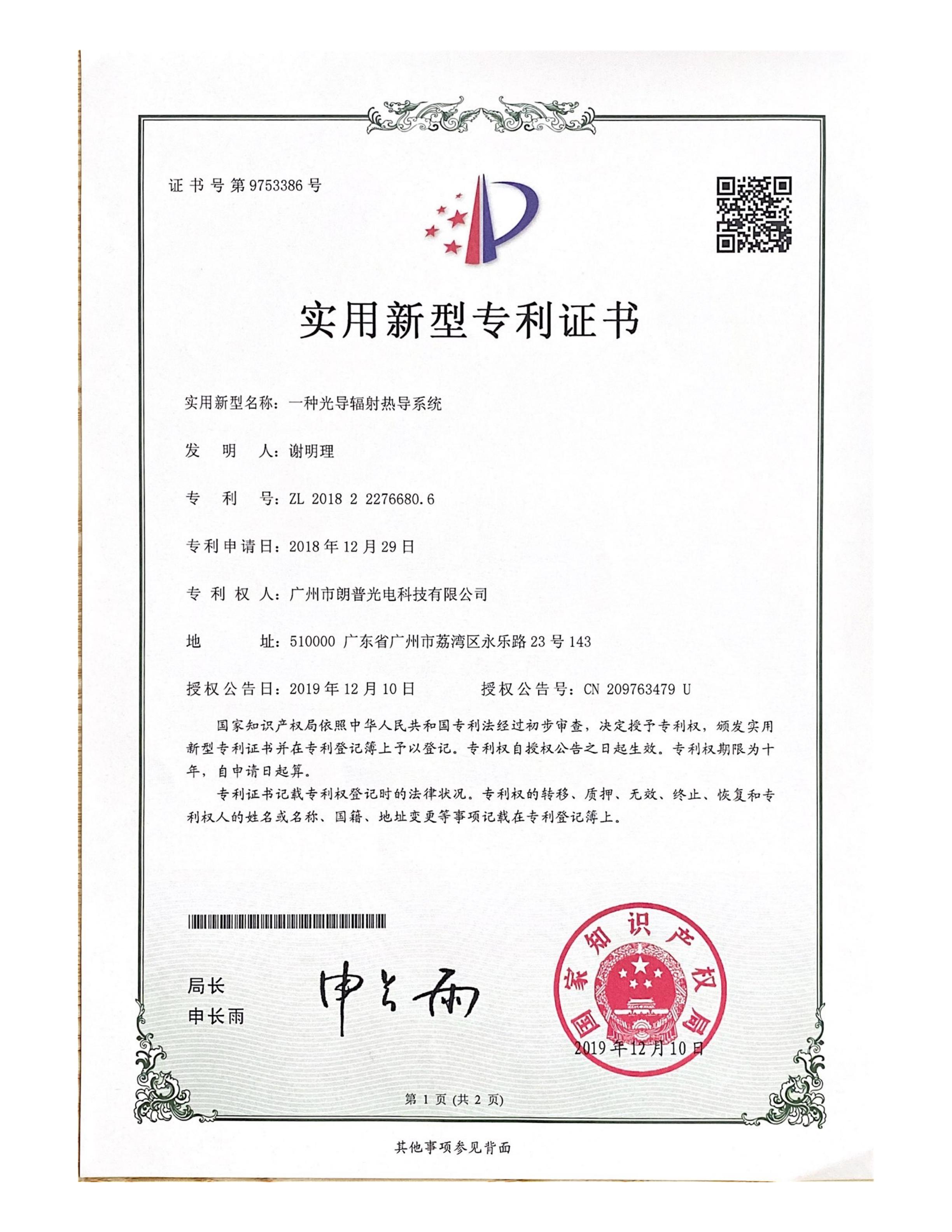 • 發(fā)明專利證書